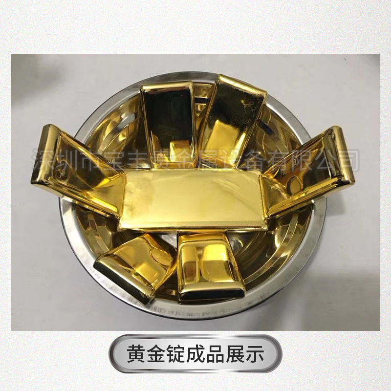 產(chǎn)品特點 1.可做國標的金條和銀條,可達鏡面效果; 2.可以定制不同形狀和重量,如金豆、金條; 3.真空保護氣體澆注,成品幾乎無損耗; 4.效率:2公斤大約12分鐘可以鑄造2公斤金條; 5.PLC智能控制系統(tǒng),操作簡單; 6.核心部件采用國際品牌,施耐德的開關(guān)、德國英飛凌IGBT等,確保設(shè)備運行穩(wěn)定; 適用金屬 黃金、銀,銅,K金及其合金等金屬材料 應(yīng)用行業(yè) 精煉廠、首飾珠寶、實驗室和礦山相關(guān)行業(yè)領(lǐng)域